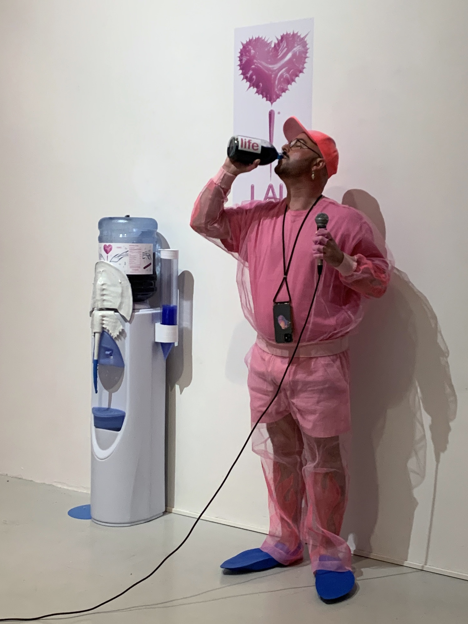 In the work Procrustinacean, Schueller draws parallels between fashion’s compulsive drive toward the new and a profound evolutionary urge. He compares humans shedding garments to other lifeforms that shed their skin or modify their appearance. In doing so, he speculates about future “fashion species” and how clothing could shapeshift once it leaves the human body. He also shares his specific fascination for the horseshoe-crab, an animal whose blue blood, that holds an important virus detector, is harvested by the pharmaceutical industry. Our reliance on this animal can determine the decline of this species, or that of our own.