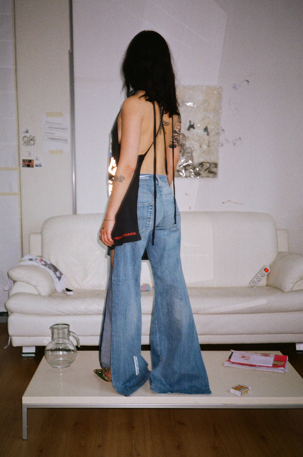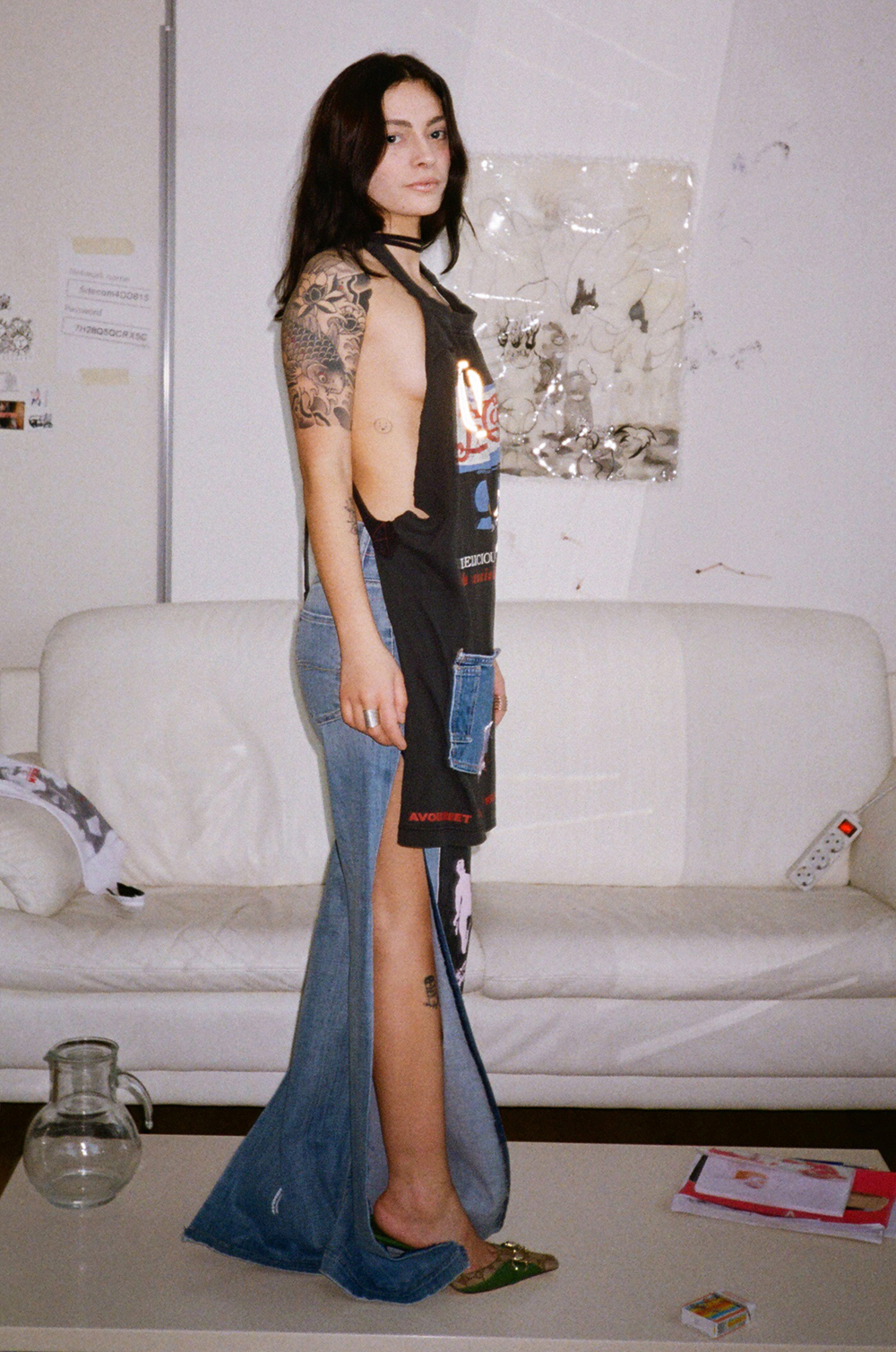 The endless source of fast fashion garments available as deadstock and in secondhand markets are like low-resolution images on a hard drive. The result is distinctive one-of-a-kind or small editions that embed a dualist vernacular between the commonplace and the tropes of high fashion.