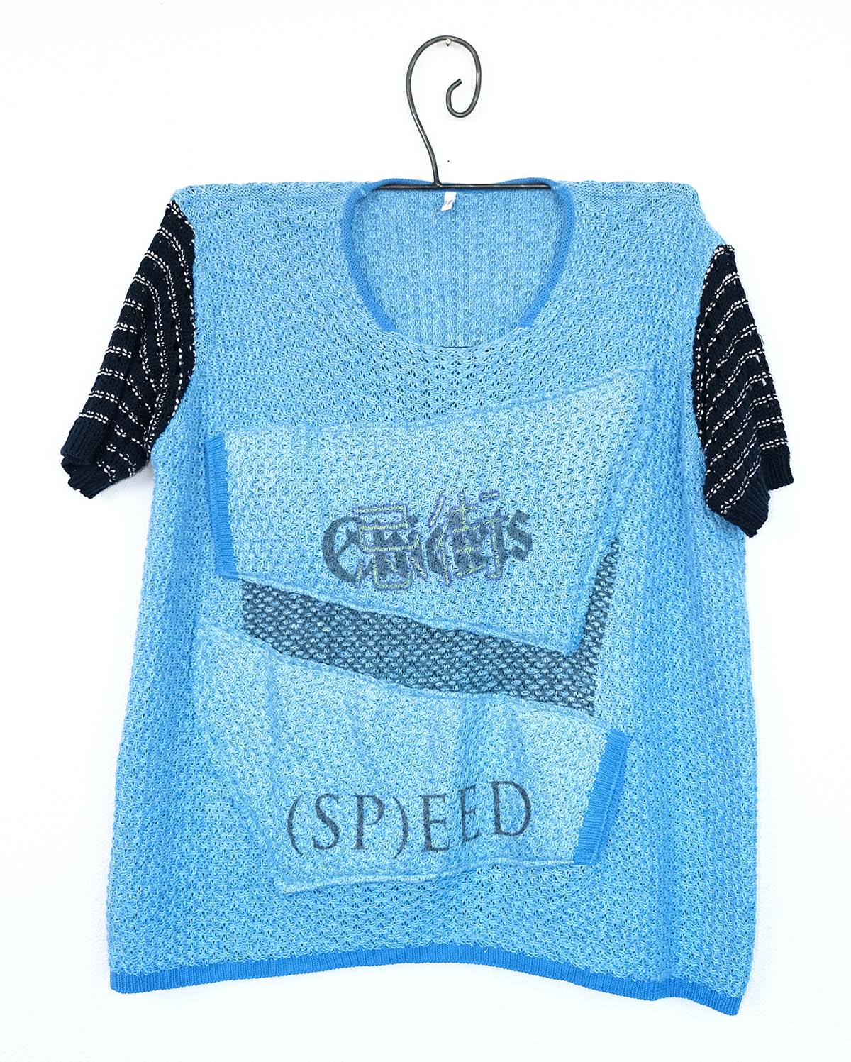 Type: Oversize rework knit jumper with digital prints\ Colour: Baby blue & Navy blue\ Size: XL\ Material:50% cotton, 50% acrylic