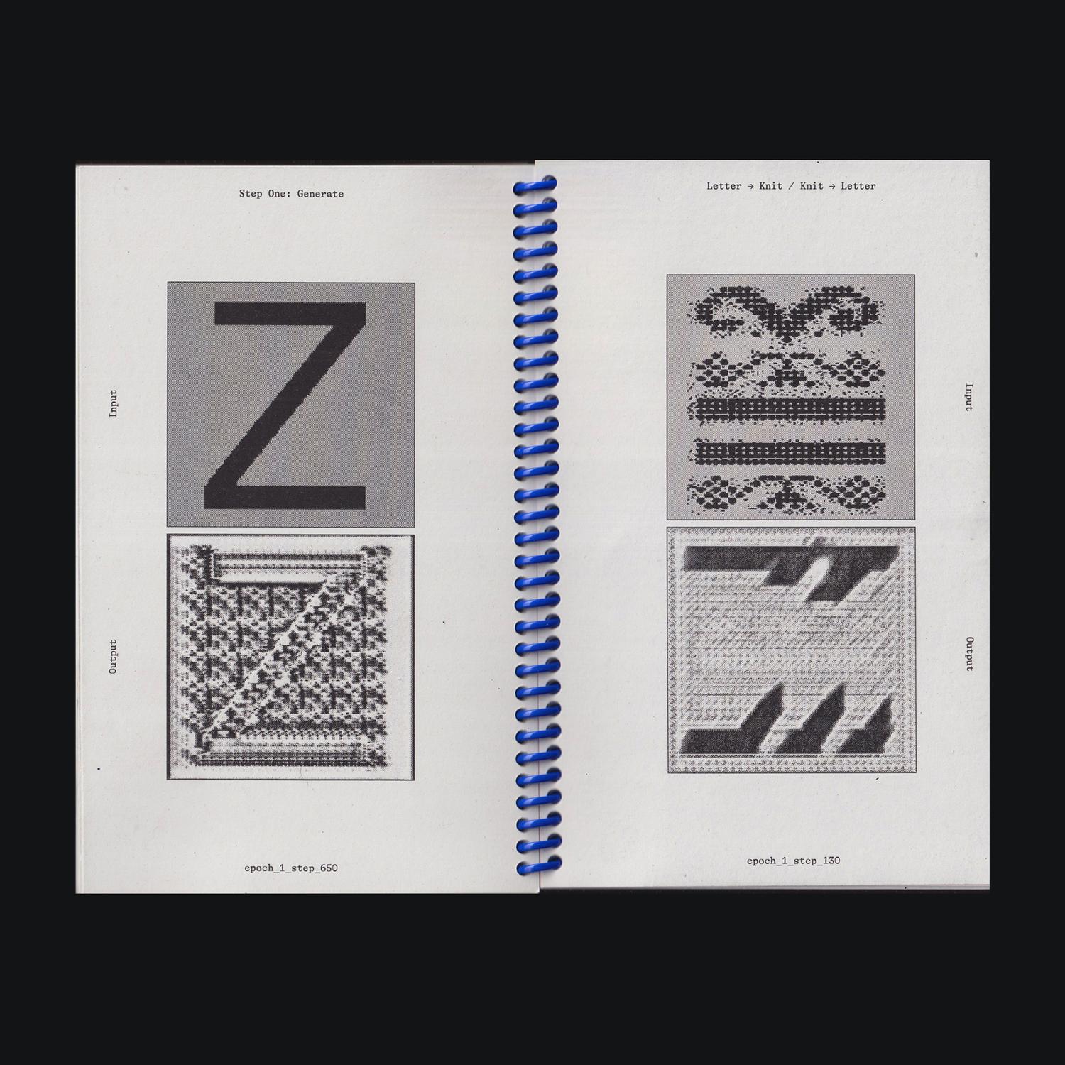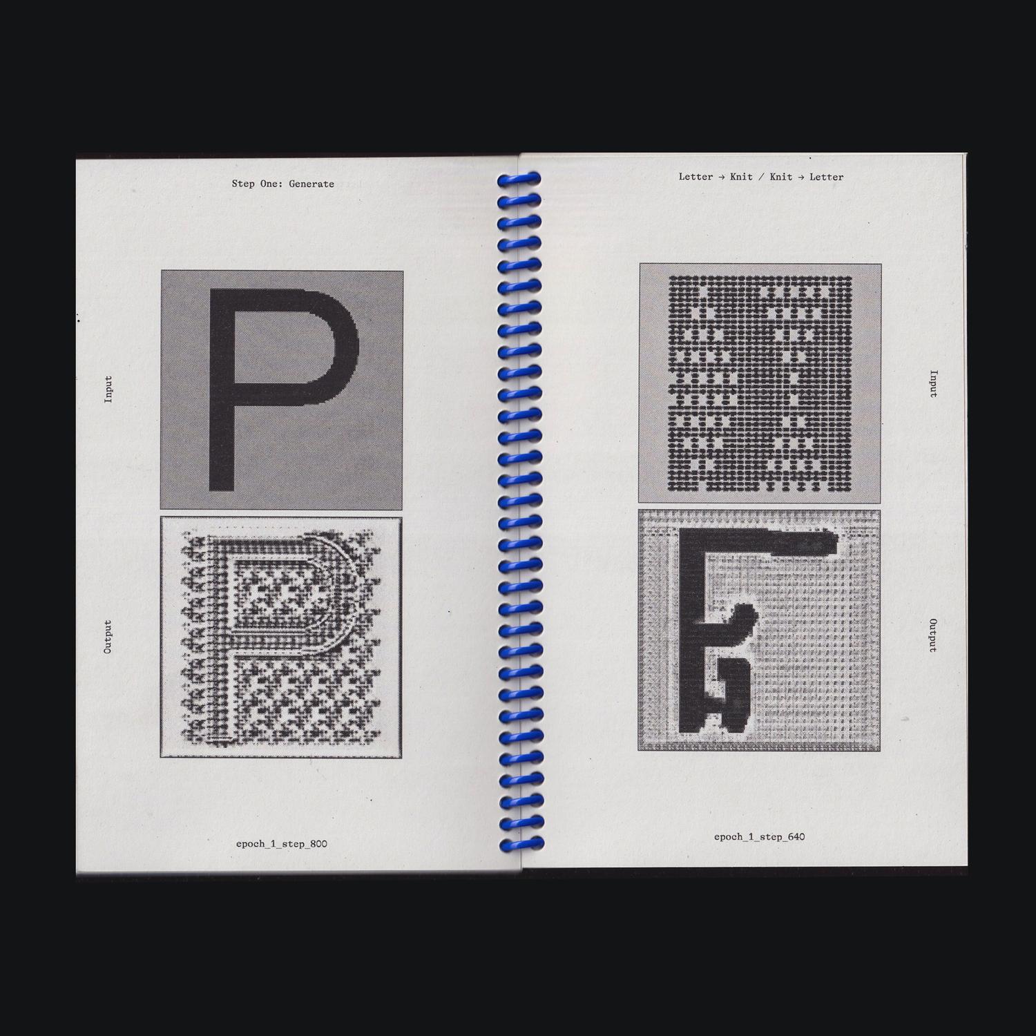 Epoch explores the relationships between traditional and newly-emerging methods of making. Beginning with a dataset of 5000 punch card designs, creative technologist Sophie Nadel uses a GAN system to generate typographic knitting patterns. The resulting typeface can then be knitted by hand or machine, completing the cycle between the computer-generated and the material. Through the lenses of textiles and typography, Epoch presents a model for how artists can utilise emerging technologies, without large AI models, to deeply connect with their tools as a knitter might pick out yarn for a project.